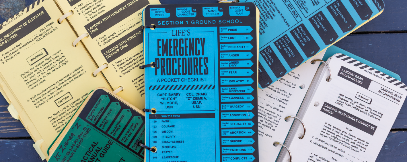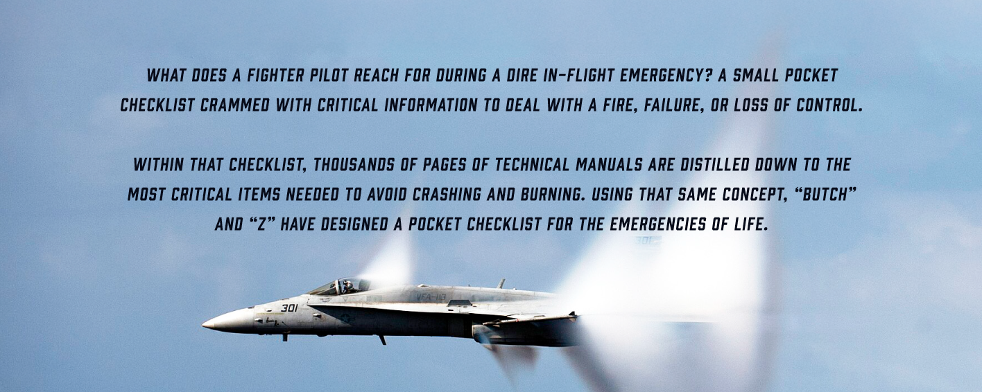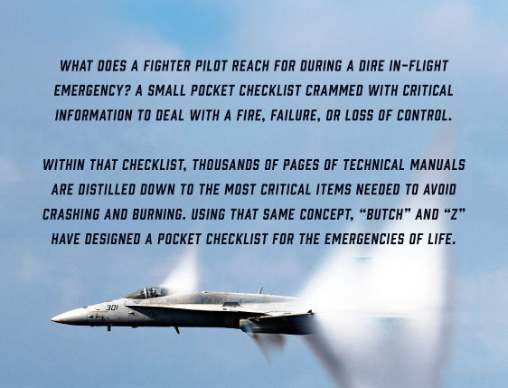 What does a fighter pilot reach for in a dire in-flight emergency? A small pocket checklist packed with critical information for handling fire, failure, or loss of control. Inside that checklist, thousands of pages of technical manuals are distilled into the most vital steps needed to avoid crashing and burning. Using that same concept, Butch and Z have designed a Pocket Checklist for Life’s Emergencies—a guide for when the unexpected happens and you need the ultimate truth to navigate through.